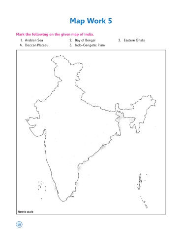 Map Work 5 Mark the following on the given map of India. 1. Arabian Sea 2. Bay of Bengal 3. Eastern Ghats 4. Deccan Plateau 5. Indo-Gangetic Plain 78