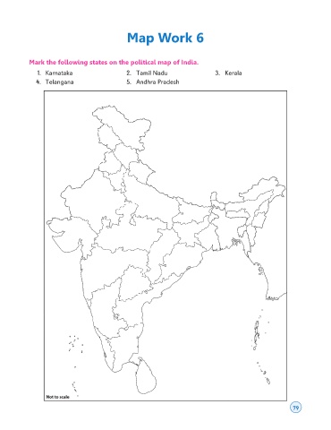 Map Work 6 Mark the following states on the political map of India. 1. Karnataka 2. Tamil Nadu 3. Kerala 4. Telangana 5. Andhra Pradesh 79