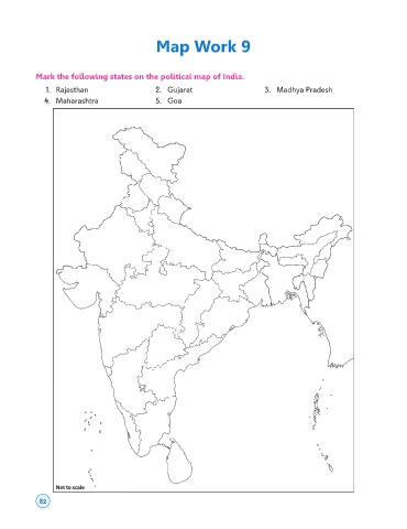 Map Work 9 Mark the following states on the political map of India. 1. Rajasthan 2. Gujarat 3. Madhya Pradesh 4. Maharashtra 5. Goa 82